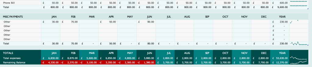 - A full yearly overview of your finances