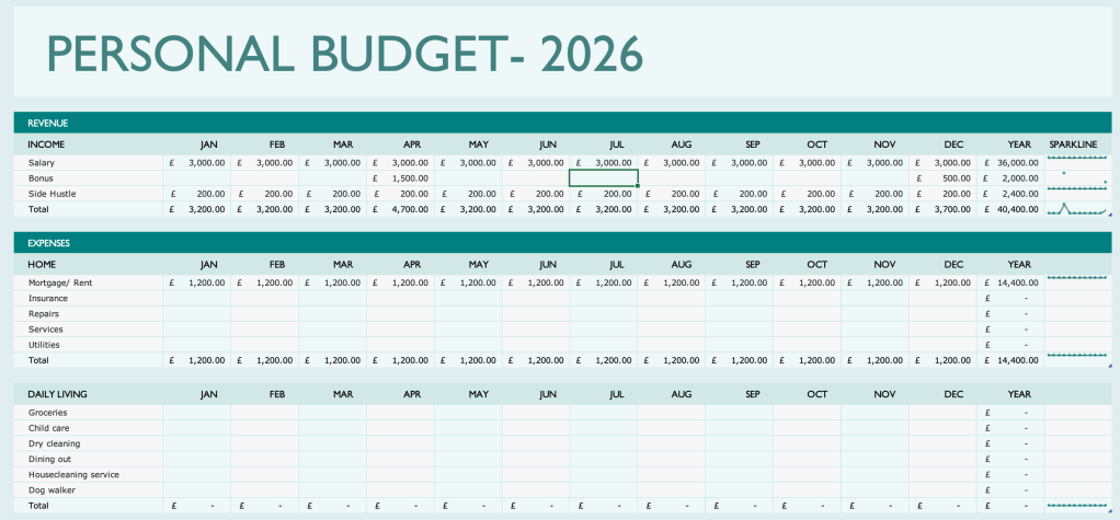 What’s Included in the Personal Budget 2026 Spreadsheet
